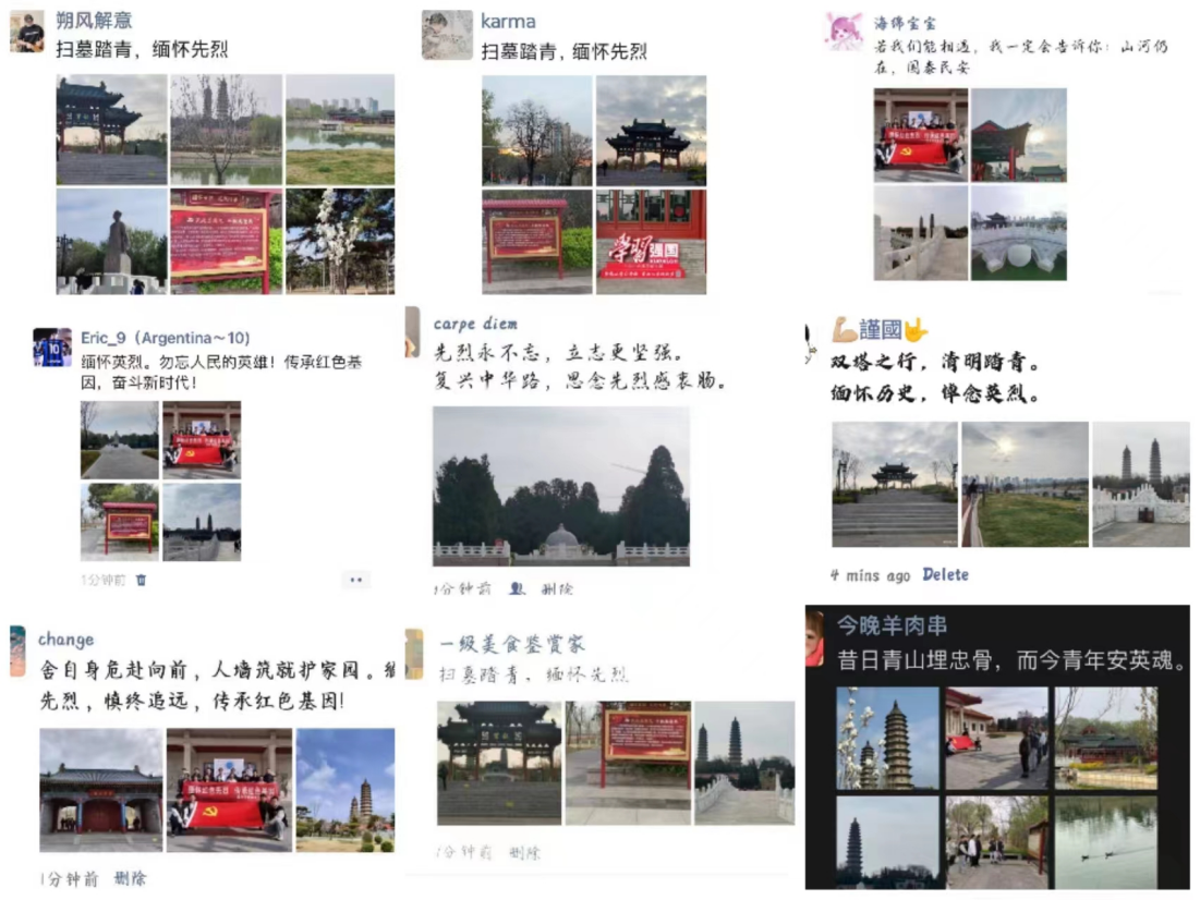 活动之后,党员同志们纷纷发朋友圈来表达对革命先烈的感恩与敬仰。昔日青山埋忠骨,而今青年安英魂。作为新时代青年,支部每一位同志都应继承革命先辈遗志,以只争朝夕、不负韶华的劲头刻苦学习、埋头苦干,努力为实现中华民族伟大复兴贡献智慧力量。