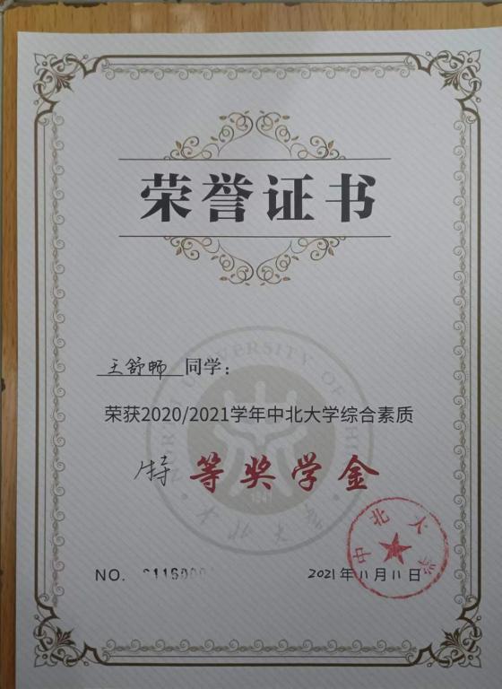 两次获校级综合素质特等奖学金,三年下来综合GPA 4.18,目前专业排名4/147,在所学课程中,达100分的有2门、达95+的有26门、90+的有41门;