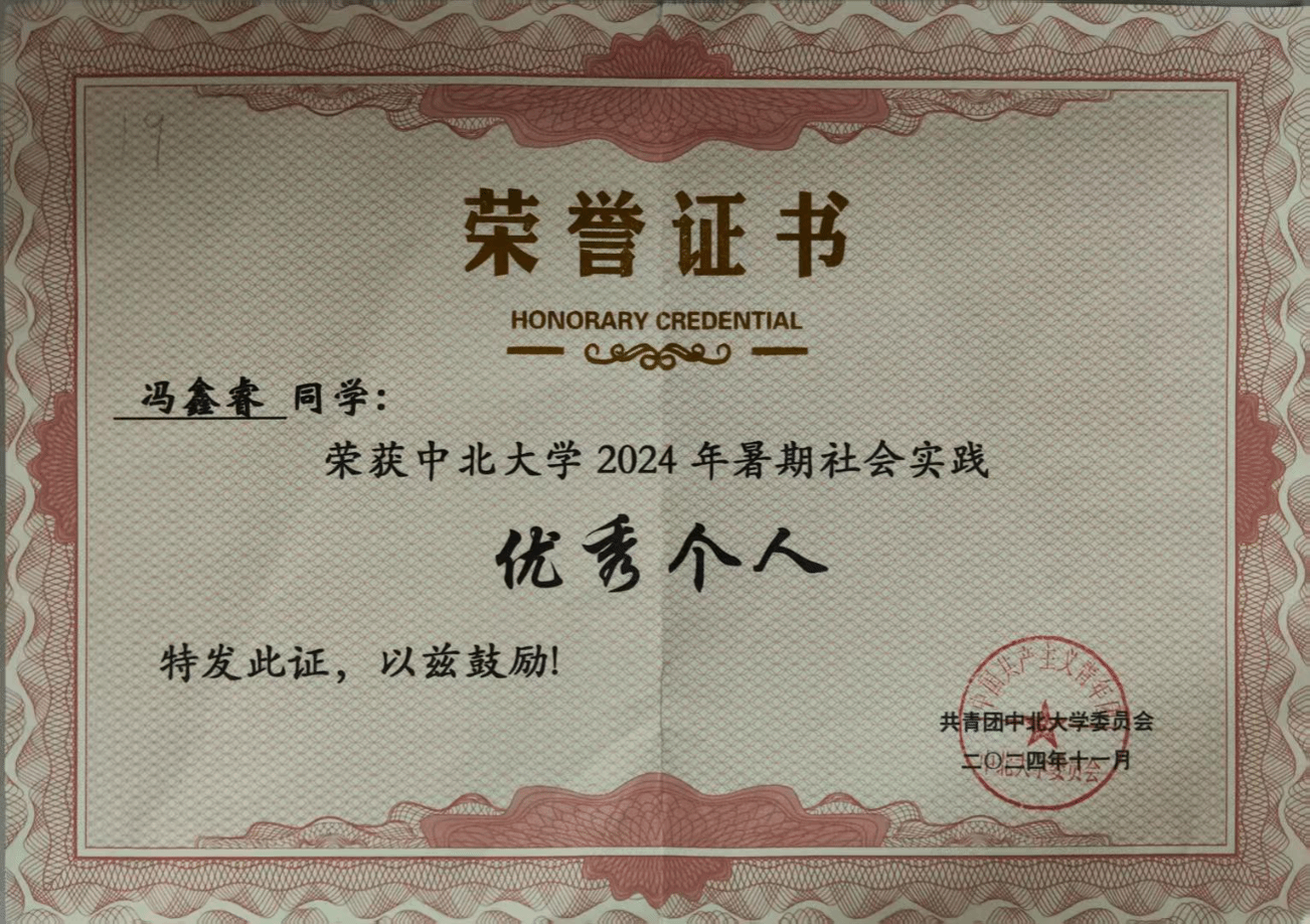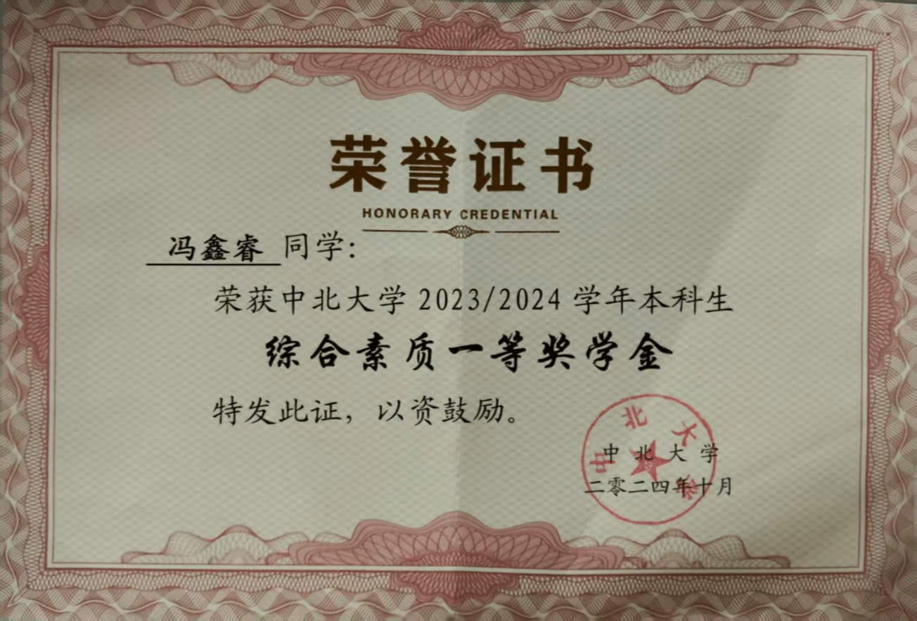本科期间,平均学分绩点3.81,专业排名8/149,通过英语四六级考试。2023年10月获综合素质二等奖,2024年10月获综合素质一等奖,2024年11月曾获校级社会实践优秀个人称号,2025年10月获综合素质二等奖。