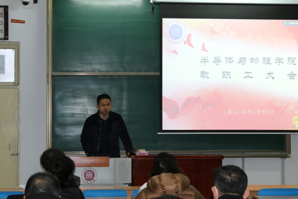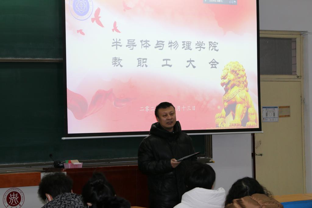 教职工大会,会议由学院副院长唐军主持,会议采用线上线下同步直播的方式召开。