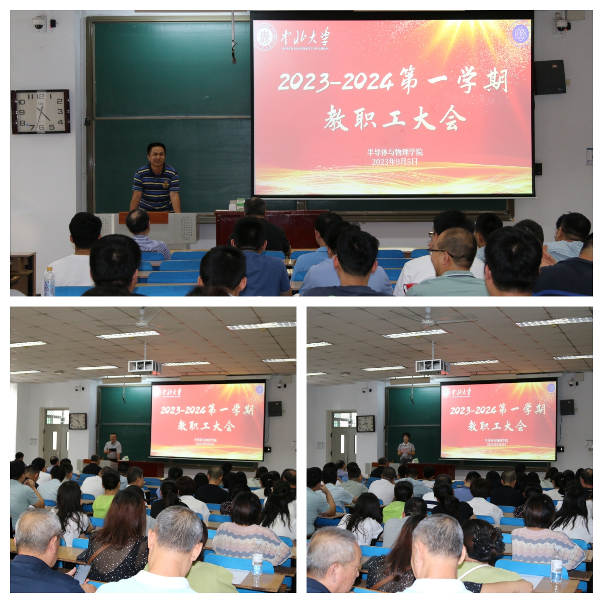 接着荆伟伟老师就暑期社会实践、学科竞赛、招生就业、“榜样教师”选举工作等分别做了详细汇报,分析了工作中取得的成绩和不足。随后对新学期学生迎新工作、教育管理工作及工会工作进行了详细介绍,希望老师们能积极支持配合。