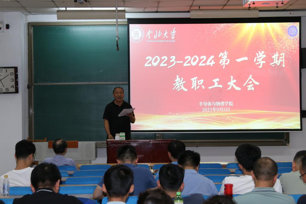 教职工大会于9月5日下午在11205H教室召开,会议由学院副院长唐军主持,本次大会对学院上半年工作进行了梳理总结,结合“双一流”建设目标的要求,对下半年工作进行了详细安排部署。