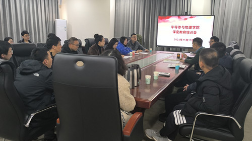 在院二层西会议室召开保密教育培训会,会议由院领导唐军主持,各科研团队负责人和保密人员参会。