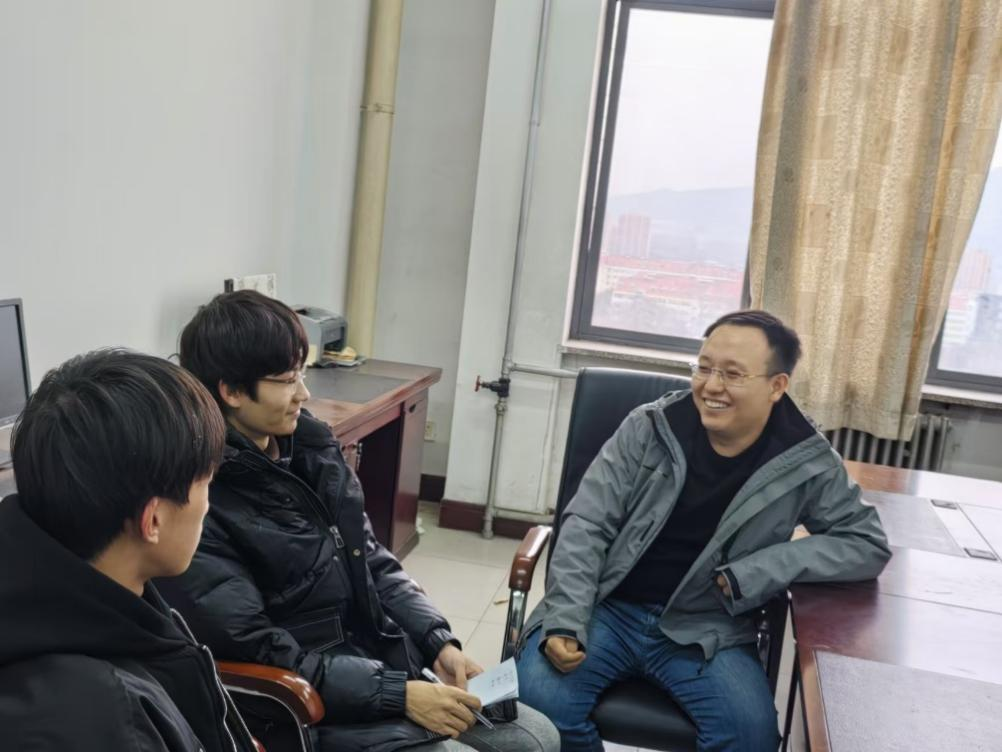 教师李治和学生进行了交流座谈。李老师从同学们学习生活中的小事切入,引出了“树立人生目标”及“大学时光应该如何规划”这两个问题。李老师通过分享个人经历和见解,帮助学生理解“上大学”的意义与价值,激发他们对生活的热情与追求。其次,李老师鼓励学生进行自我反思,探索个人的人生目标与价值观。两名学生畅所欲言,积极和李老师分享他们大学生活中参与的活动,以及他们在学习生活中的困惑。李老师首先对他们积极参与活动的行为进行了肯定和鼓励,并引导他们建立和谐的人际关系,学会与家人、朋友、老师和同学相处。这不仅能帮助学生理解人际关系的重要性,还能培养他们的社交能力,提升社会责任感,拓宽社会视野,帮助他们成为具有正确价值观和学业观的当代大学生。