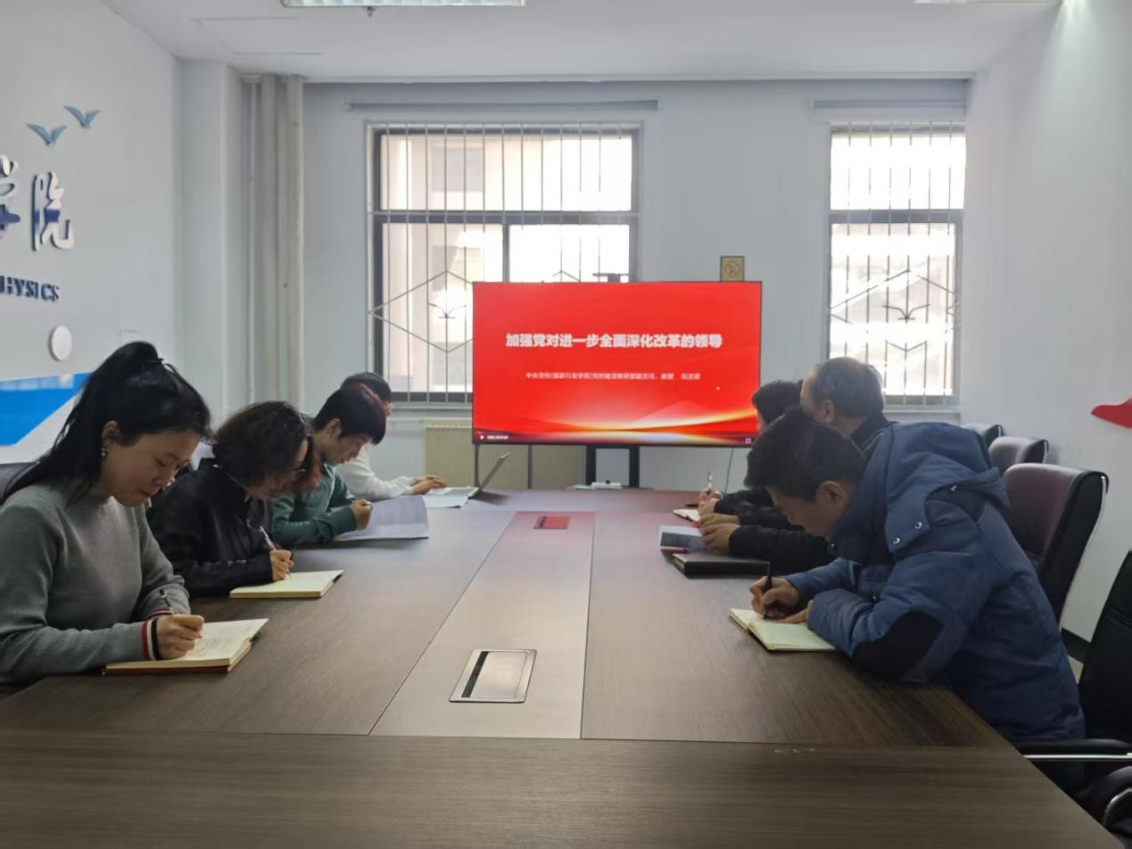 2025年3月18日下午,学院继续开展第四次专题培训,组织观看了由中央党校(国家行政学院)党的建设教研部副主任、教授祝灵君主讲的视频《加强党对进一步全面深化改革的领导》。祝教授围绕党的建设与全面深化改革的关系,系统阐述了党的领导在改革中的核心作用,并结合实际案例,提出了加强党的领导的具体路径。培训结束后,与会人员围绕培训内容进行了深入交流发言,纷纷表示要以更高的政治站位和更强的责任感,推动学院各项改革任务落地见效。