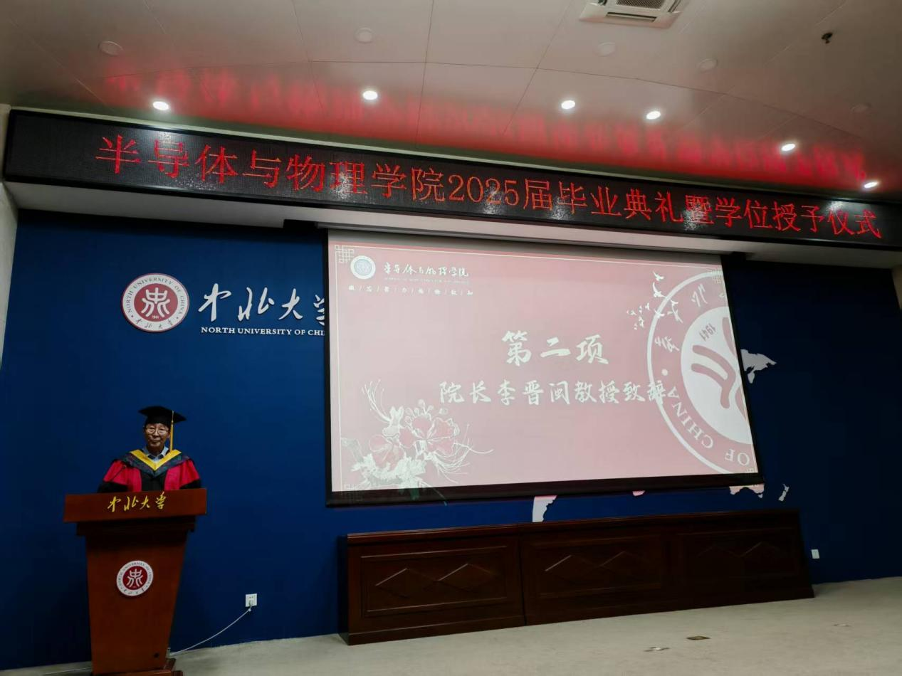 院长李晋闽登台致辞,向圆满完成学业的毕业生致以热烈祝贺,寄语大家秉持学院精神,以所学回馈家国,让青春在奋斗中熠熠生辉。