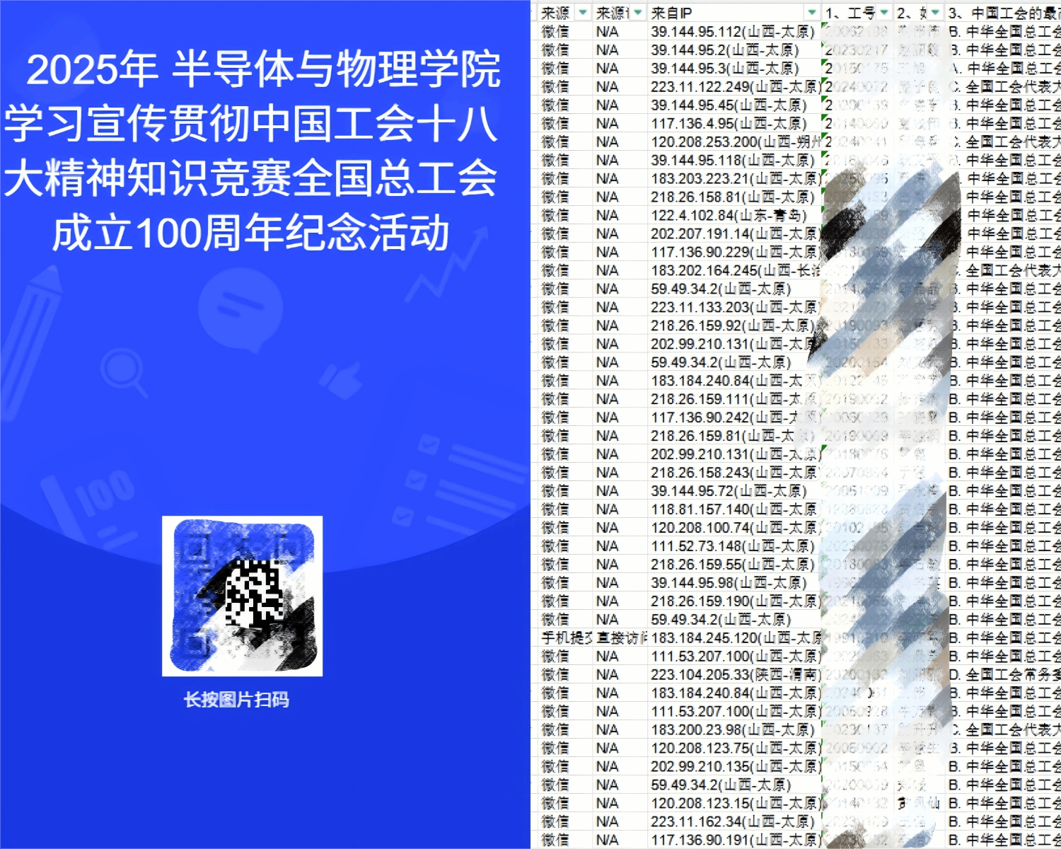 工会于2025年10月全月组织开展“致敬百年工运,奋进时代新程”线上答题活动。活动自启动以来,得到全体工会会员的积极响应,参与热情高涨,最终以丰硕的活动成果圆满落幕。