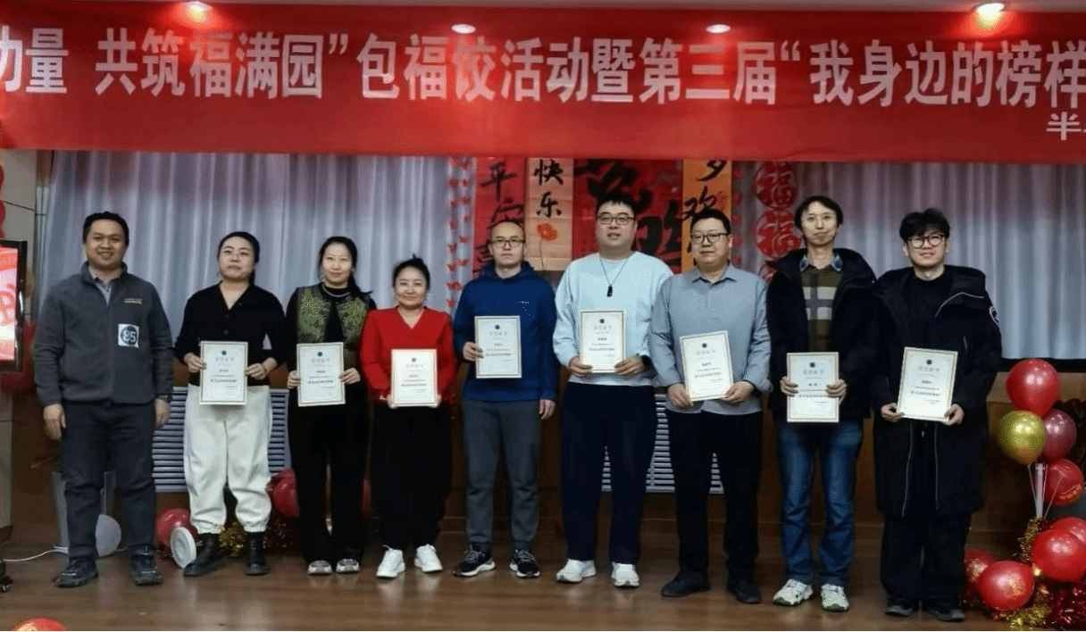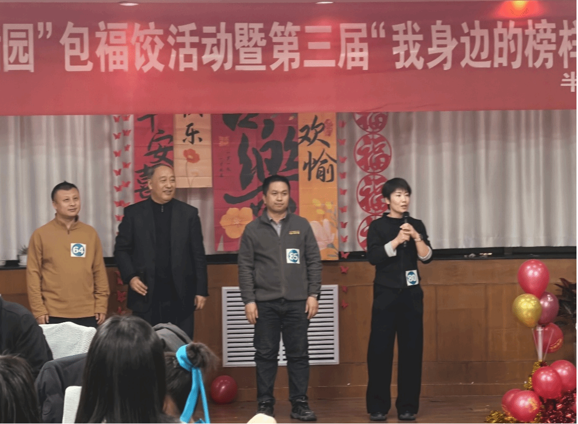 包福饺活动暨第三届“我身边的榜样教师”颁奖典礼在此举行。活动由全院教师及部分家属共同参与,以团圆辞旧迎新,以崇敬致敬榜样,现场满是温馨喜庆的节日氛围。
