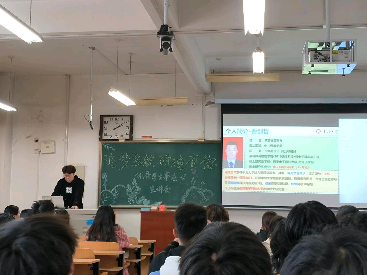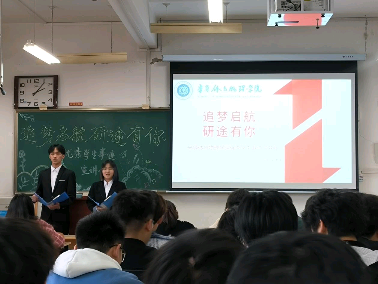 宣讲会在热烈的掌声中拉开帷幕,三位保研学长用亲身经历及丰富经验为同学们指点迷津。本次大会由张芷恒与赵君正两位同学主持。