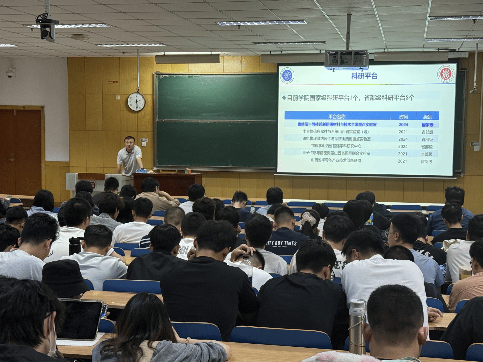 随后,梁庭副院长从考研专业选择与就业政策解读两方面进行了详细讲解。建议同学们要关注行业技术迭代趋势,在备考或求职过程中主动学习新兴技术,提升自身竞争力,以适应行业发展需求。梁院长还表示,学院将持续为学生提供考研咨询、企业宣讲会等支持,希望全体学生在升学与就业道路上充分发挥半导体与物理专业的学科优势,实现个人发展与行业需求的精准对接。
