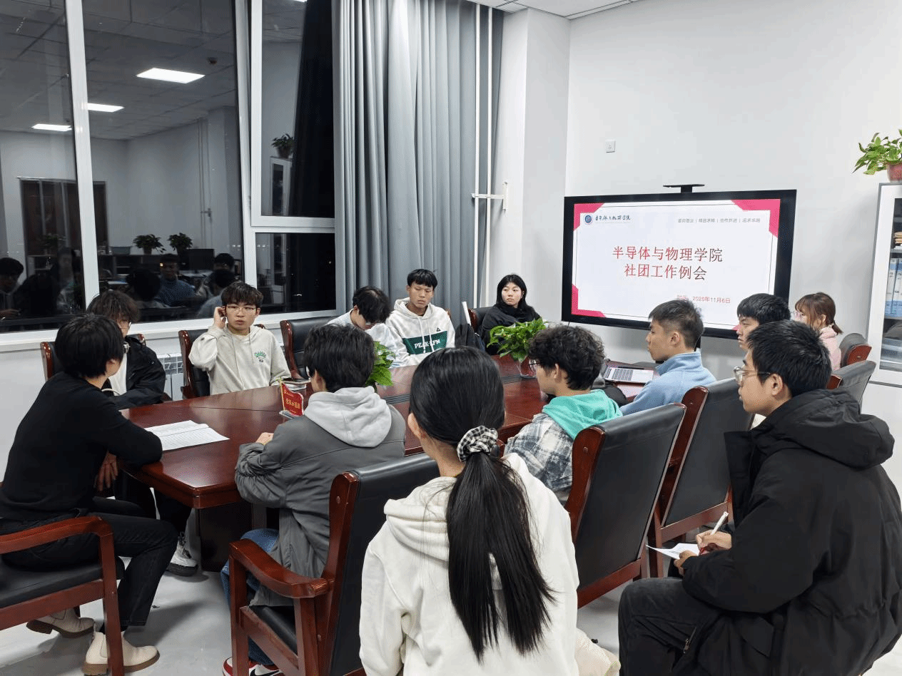 召开社团工作例会,会议由学院团委副书记王旭主持,阳光网球社、萌芽剧社、AIGC中北、物理协会四家社团负责人参会。