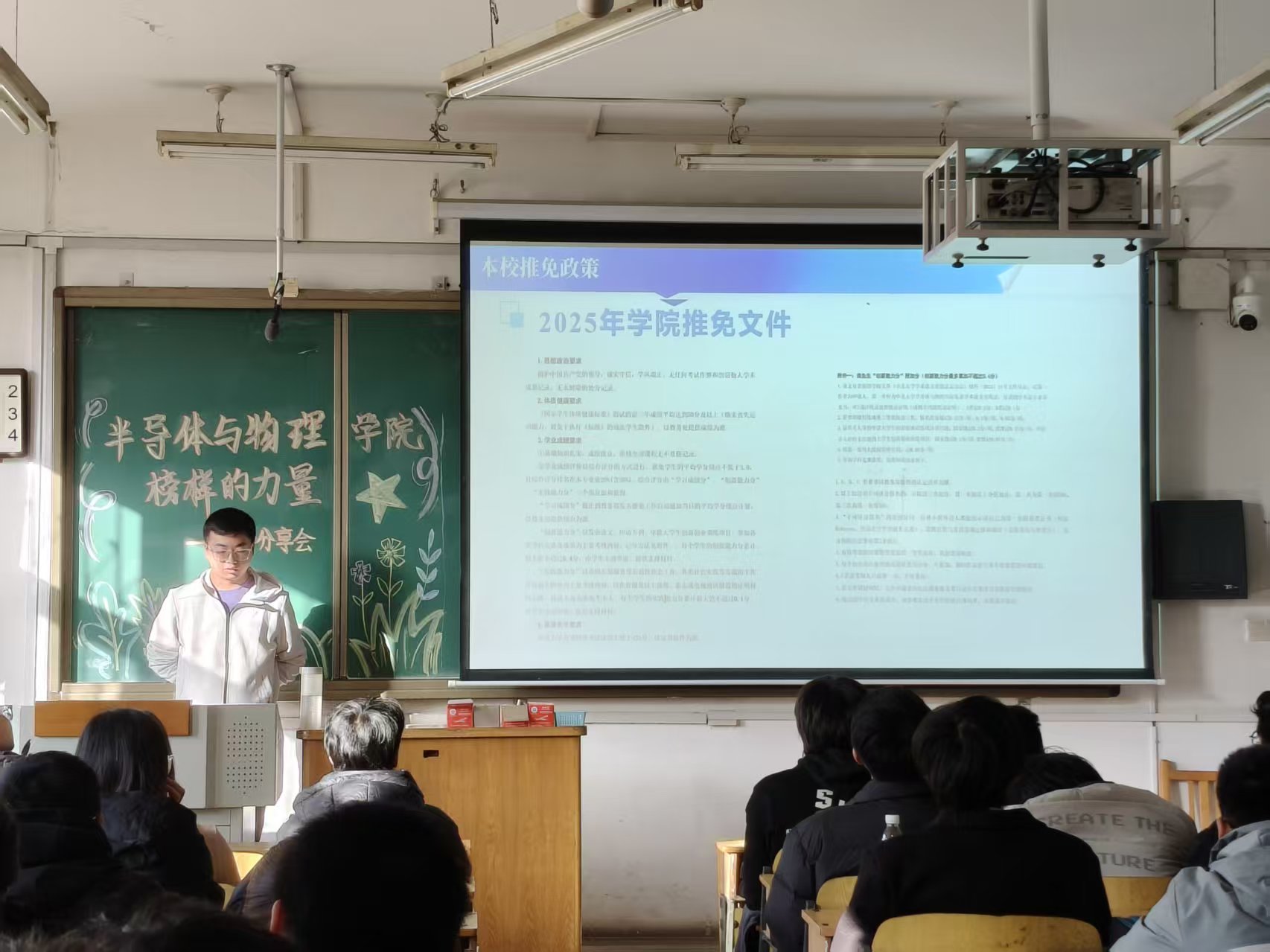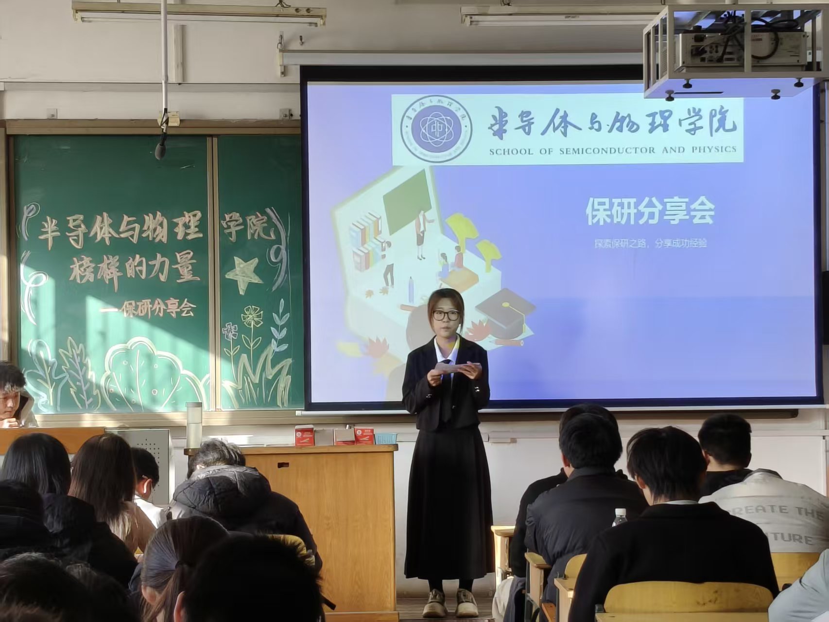 "榜样的力量—保研分享会"在10305H教室成功举办。本次分享会在王老师的悉心指导下,由学院学习部周密筹备、精心组织。活动吸引了来自各年级的200余名学生踊跃参与,现场座无虚席,交流气氛热烈,充分展现了学院学子积极向上的精神风貌和浓厚的学习氛围。
