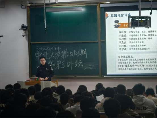 讲座在热烈的掌声中拉开帷幕。王伟副所长结合其多年丰富的基层警务工作经验,立足大学校园高发、易发的诈骗类型,进行了深入浅出的剖析与讲解。他通过展示一系列发生在高校内的真实案例,生动形象地揭示了“刷单返利”、“冒充客服”、“网络贷款”、“杀猪盘”、“虚假购物”以及“冒充熟人”等多种常见电信诈骗的作案手法和特征。